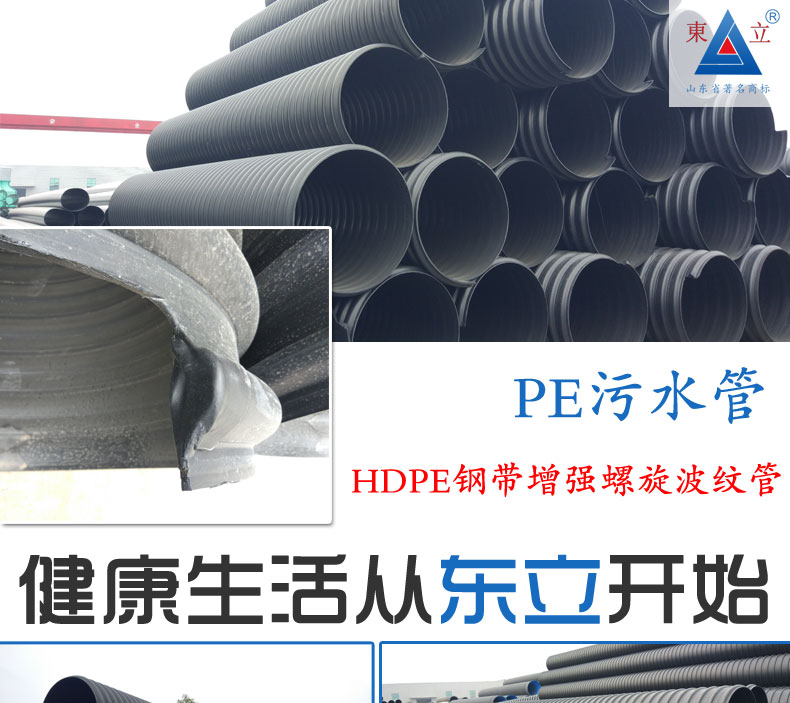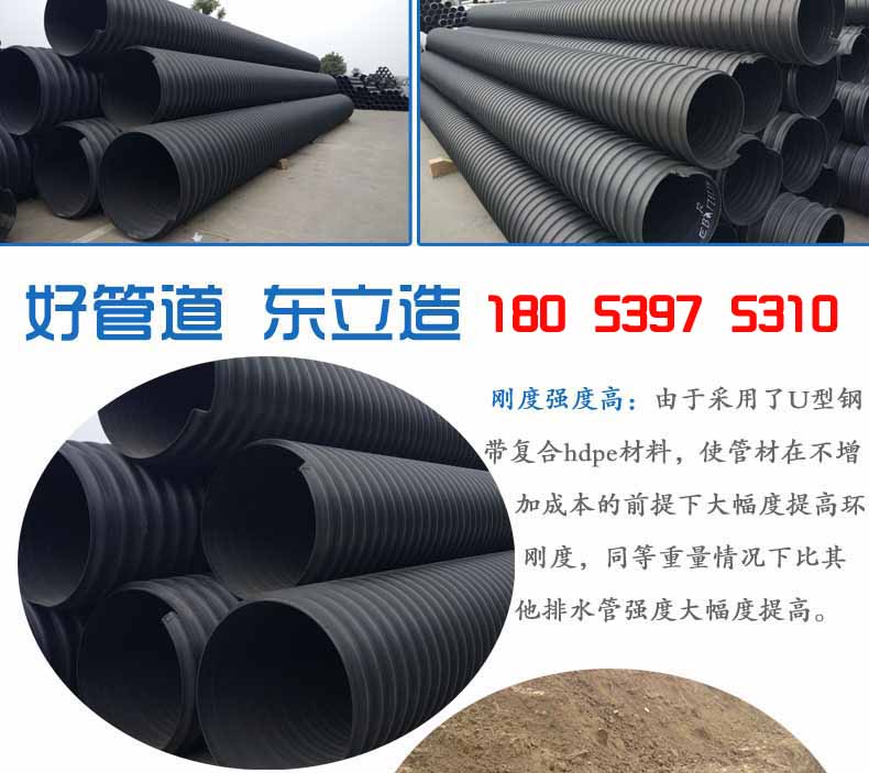 2.大口徑高強(qiáng)度:由于采用了U型鋼帶復(fù)合PE材料,使管材在不增加成本的前提下大幅度提高環(huán)剛度,同等重量情況下比其他塑料排水管強(qiáng)度大幅度提高?山鉀Q重載等一系列問(wèn)題,大口徑管材優(yōu)勢(shì)更加明顯,比水泥管和其它塑料管重量更輕、強(qiáng)度更高。